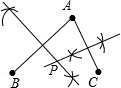 分析:根据到线段两端点的距离相等的点在线段的垂直平分线上,故连接AB、AC.作出AB、AC的垂直平分线,两线的交点就是P点.