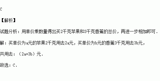 (2014•乐山)苹果的单价为a元/千克,香蕉的单价为b元/千克,买2千克苹果和3千克香蕉共需( )