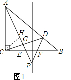 分析 (1)可通过构建全等三角形得出角相等来求证.要证CG⊥AP,那么就要证出∠BCD=∠CAH,那么可构建与三角形BCD全等的三角形来求解.过C作∠BCA的平分线交AP于H,那么就是证△ACH和△BDC全等,已知AC=BC,∠ACH=∠B=45°,只要证出CH=BD就能得出两三角形全等,那么我们可通过全等△CHE和△BDF来求证.由于E,F关于MN对称,那么CE=BF,PE=PF,可得出∠PEF=∠PFE,也就是∠CEH=∠DFB,又已知了∠HCB=∠B=45°,因此就能得出△CEH与△DFB全等,就能得出CH=BD,也就能得出△AHC与△BDC全等了.进而可通过∠DCB=∠CAG来得出CG⊥AP;