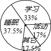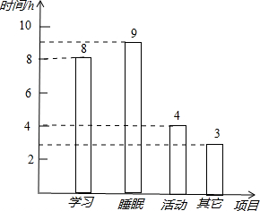 | 项目 | 学习 | 睡眠 | 活动 | 其它 | 合计 |