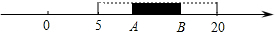 解答 解:(1)由数轴观察知三根木棒长是20-5=15(cm),