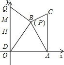 £¨4£©±¾ÌâÆäʵÖ÷ÒªÊÇ¿´PÔÚBµãºÍCµãʱ¡ÏOPQµÄ¶ÈÊý·¶Î§£¬µ±¡ÏOBQµÄ¶ÈÊý´óÓÚ90¡ã£¬¡ÏOCQµÄ¶ÈÊýСÓÚ90¡ãʱ£¬ÄÇôÔÚAB£¬BCÉÏ·Ö±ðÓÐÒ»¸ö·ûºÏÒªÇóµÄµãP£¬Èç¹û¡ÏOBQµÄ¶ÈÊýСÓÚ90¡ãʱÄÇô¾ÍûÓзûºÏÒªÇóµÄµã£¬Èç¹û¡ÏOBQ=90¡ã£¬ÄÇô·ûºÏÒªÇóµÄµãÖ»ÓÐÒ»¸ö£®µ±P£¬BÖØºÏʱ£¬×÷¡ÏOPM=90¡ã½»yÖáÓÚµãM£¬×÷PH¡ÍyÖáÓÚµãH£¬È»ºó±È½ÏOMºÍOQµÄ³¤¼´¿ÉµÃ³ö¡ÏOPQµÄ´óÖ·¶Î§£¬¸ù¾ÝÏàËÆÈý½ÇÐÎOPHºÍOPM²»ÄѵóöOMµÄ³¤£¬È»ºó±È½ÏOM£¬OQµÄ´óС£¬Èç¹ûOQ£¾OMÔò˵Ã÷¡ÏOPQ£¾90¡ã£¬·´Ö®ÔòСÓÚ90¡ã£¬ÓÃͬÑùµÄ·½·¨¿ÉµÃ³öµ±PÓëCÖØºÏʱ¡ÏOPQµÄ´óÖÂȡֵ·¶Î§£¬È»ºó¸ù¾ÝÉÏÃæµÄ·ÖÎö¼´¿ÉÅж¨³öÓм¸¸ö·ûºÏÒªÇóµÄµã£®