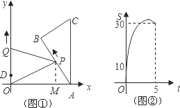 £¨2£©Óɺ¯ÊýµÄͼÐοÉÖª£ºµ±t=5ʱ£¬Èý½ÇÐÎOPQµÄÃæ»ýÊÇ30£¬Èç¹ûÉèµãPµÄËÙ¶ÈΪa£¬ÄÇôAP=5a£¬ÄÇôPµ½ACµÄ¾àÀë¾ÍÊÇ