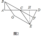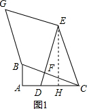 分析 (1)过E作EH⊥CD于H,根据等腰三角形的性质得到DH=$\frac{1}{2}$CD,等量代换得到AB=DH,根据余角的性质得到∠ACB=∠DEH,根据全等三角形的性质得到BC=DE=CE,根据旋转的性质得到∠GED=90°,GE=DE,即可得到结论.