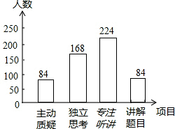 £¨2£©ÀûÓÃ×ÜÈËÊý¼õÈ¥Ö÷¶¯ÖÊÒÉ¡¢¶ÀÁ¢Ë¼¿¼¡¢×¨×¢Ìý½²ÈýÏîµÄÈËÊý¿ÉµÃ½²½âÌâÄ¿µÄÈËÊý£»