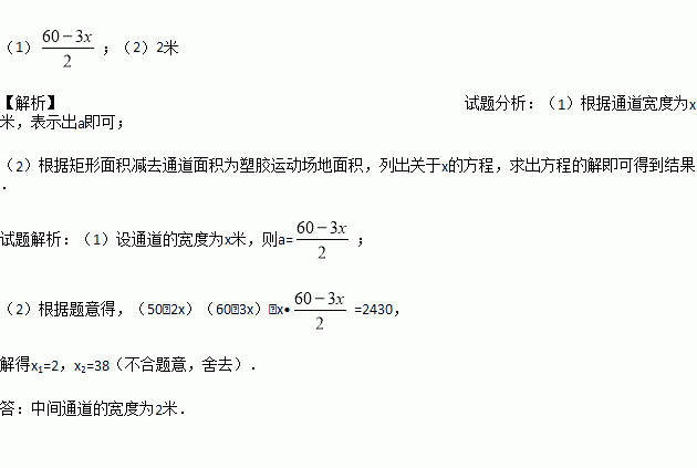 (2)若塑胶运动场地总占地面积为 2430平方米,则通道的宽度为多少米?