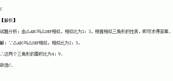 (2015秋•市中区期末)若△ABC与△DEF相似,相似比为2:3,则这两个三角形的面积比为( )
