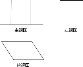 分析:直棱柱的主视图是长4cm宽2.4cm的中间有两条竖线的长方形;左视图是长2cm宽2.4cm的长方形;俯视图是平行四边形.据此可画出图形.