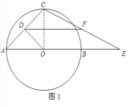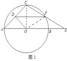 (2)当点F在⊙O上时,连接OC、OF,如图2,![]()
