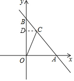 分析 先根据直线解析式求出A、B两点的坐标,再过点C作y轴的垂线,垂足为点D,则△CBD∽△ABO,运用相似三角形对应边成比例求出CD、BD的长,进而求出点C的坐标.