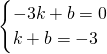 将点B(-3,0)、点P'(1,-3)代入可得: