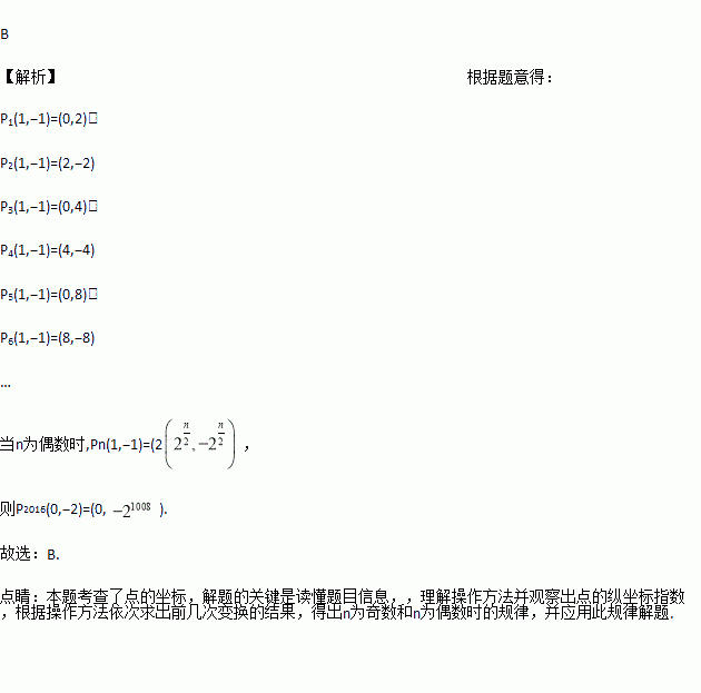对点P(x,y)的一次操作变换记为P1(x,y),定义其变换法则如下:P1(x,y)=(x+y,x﹣y),且规定Pn(Pn+1(x,y))(n为大于1的整数).如P1(1,2)=(3,﹣1),P2(1,2)=P1(P1(1,2))=P1(3,﹣1)=(2,4),P3(1,2)=P1(P2(1,2))=P1(2,4)=(6,﹣2),则P2016(0,﹣2)=( )