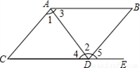 A. ∠B+BCD=180° B. ∠1=∠2 C. ∠3 =∠4 D. ∠B=∠5