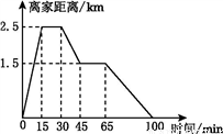 张阳从家里跑步去体育场,在那里锻炼了一会儿后,又走到文具店去买笔,然后走回家,如图是张阳离家的距离与时间的关系图象.