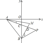 分析 如图,AP与y轴交于点C,与BM交于点D,根据角平分线的定义得到∠1=$\frac{1}{2}$∠OAC,∠2=$\frac{1}{2}$∠PBC,利用三角形内角和和对顶角相等,在△ADM和△BPM中得到∠1+∠M=∠2+∠P①,在△AOC和△BPC中得到∠OAC+∠AOC=∠PBC+∠P,即2∠1+90°=2∠2+∠P②,然后利用等式的性质变形易得2∠M-∠P=90°.