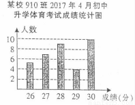 如图是某校910班参加2017年4月份初中升学体育考试成绩(满分30分)的统计图,则该班这次升学考试成绩的中位数,众数分别是( )