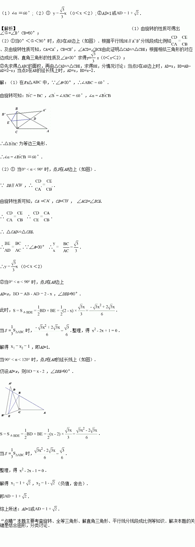 直角三角板ABC中,∠A=30°,BC=1.将其绕直角顶点C逆时针旋转一个角