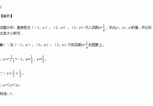 A.y3<y2<y1 B.y2<y3<y1 C.y1<y3<y2 D.y1<y2<y3