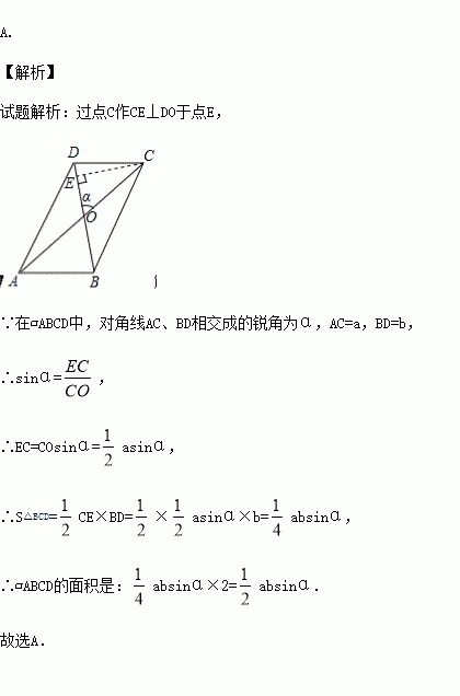 如图,在?ABCD中,对角线AC、BD相交成的锐角为α,若AC=a,BD=b,则?ABCD的面积是( )