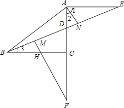 分析 首先证明∠3=∠2,然后可证明△BMH≌△AND,进而可得BH=AD,再由条件AC=BC,可得DC=HC,然后证明△DCB≌△HCF,根据全等三角形的性质可得CB=CF.