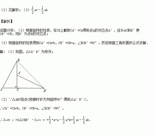 (2014秋•南京校级期末)如图2,已知△ABC中,∠ACB=90°,AC=b,BC=a.将△ABC绕点C按顺时针方向旋转90°,点B旋转到点B′,点A旋转到点A′.
