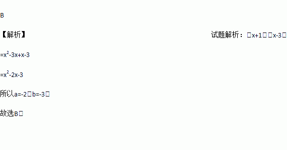 把多项式x2+ax+b分解因式,得(x+1)(x-3)则a,b的值分别是( )