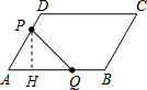 分析 首先过点P作PH⊥AB于点H,设经过x秒,五边形PQBCD面积最小,则可表示出PD与AQ,又由AB=8cm,AD=4cm,∠A=60°,表示出PH与AP的长,然后由S五边形PQBCD=S?ABCD-S△APQ,可得当△APQ的面积最大时,五边形PQBCD面积最小,继而可得S△APQ=$\frac{1}{2}$AQ•PH=$\frac{1}{2}$×4x×(2$\sqrt{3}$-$\sqrt{3}$x),则可求得答案.