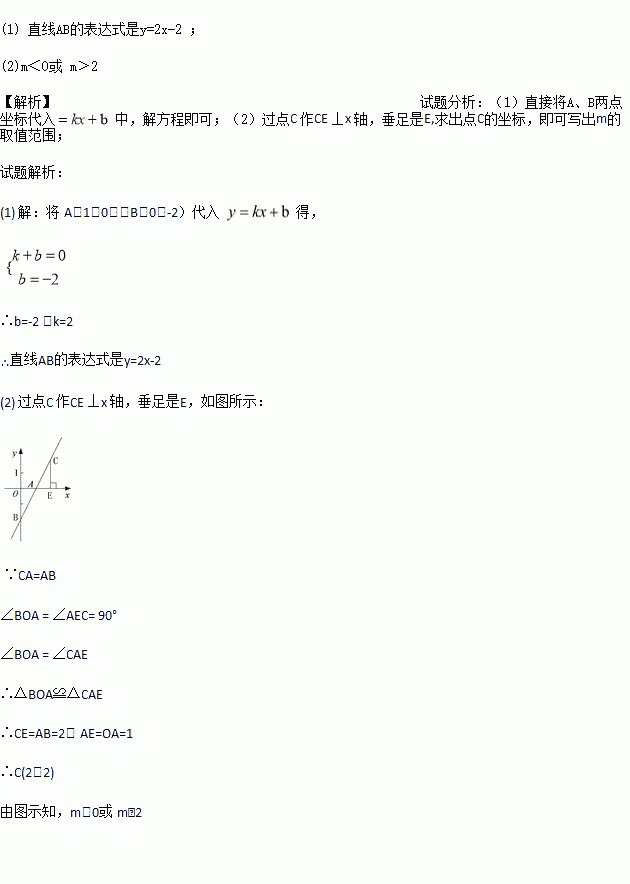 (2)点C是直线AB上的点,且CA=AB,过动点P(m,0)且垂直于x轴的直线与直线AB 交于点D,若点D不在线段BC上,写出m的取值范围.
