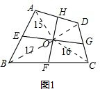 (1)由题可得S△AOE+S△AOH=15①,S△BOE+S△BOF=17②,S△COF+S△COG=16③,只需将①+③-②,就可解决问题;