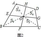 分析 由阅读材料可知:三角形的中线将三角形分成面积相等的两部分.条件中出现了线段的中点,问题中涉及到面积,由此联想到“三角形的中线将三角形分成面积相等的两部分”,故而连接OA、OB、OC、OD,即可得到S△AOE=S△BOE,S△BOF=S△COF,S△COG=S△DOG,S△DOH=S△AOH.