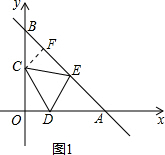 解答 解:如图1,作CF⊥BE于F点,由函数解析式可得点B(0,4),点A(4,0),∠A=∠B=45°,![]()