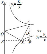 分析:利用等腰直角三角形的性质结合全等三角形的判定方法得出△OEB≌△BFA(AAS),进而得出k1+k2=0,表示出A,B点坐标进而求出即可.