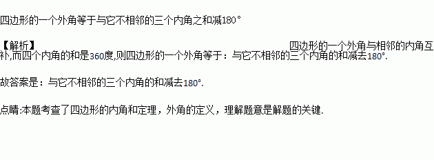 我们都知道“三角形的一个外角等于与它不相邻的两个内角的和”,据此,请你叙述四边形一个外角和与它不相邻的三个内角之间的数量关系___________.