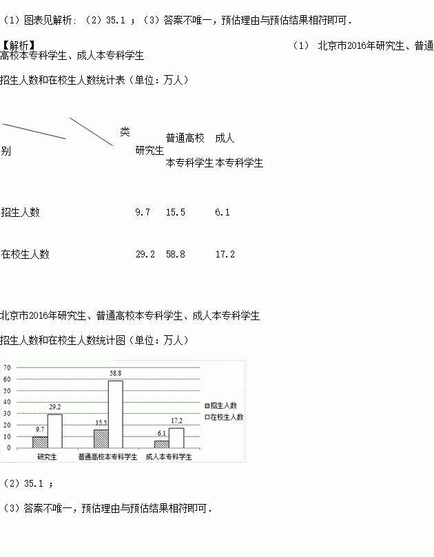 £¨1£©ÇëÓÃͳ¼ÆÍ¼»òͳ¼Æ±í½«±±¾©ÊÐ2016ÄêÑо¿Éú¡¢ÆÕͨ¸ßУ±¾×¨¿ÆÑ§Éú¡¢³ÉÈ˱¾×¨¿ÆÑ§ÉúµÄÕÐÉúÈËÊýºÍÔÚУÉúÈËÊý±íʾ³öÀ´£»