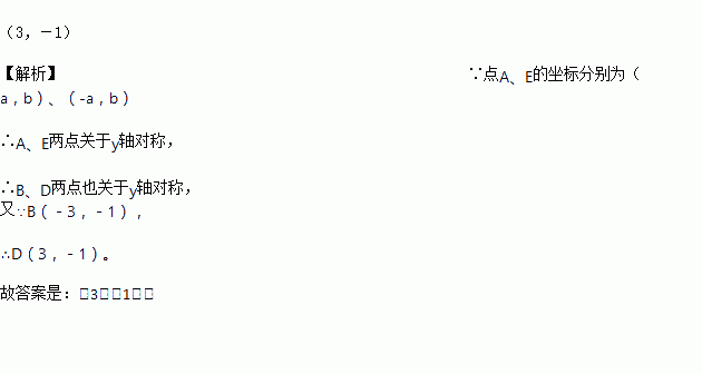 将正六边形ABCDEF放入平面直角坐标系xOy后,若点A,B,E的坐标分别为(a,b),(-3,-1),(-a,b),则点D的坐标为____.