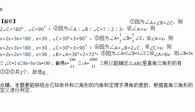 ∠C; ④∠A=∠B=2∠C; ⑤∠A=2∠B=3∠C,能确定△ABC为直角三角形的条件有( )