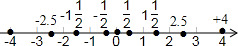 故-4<-2.5<-1$\frac{1}{2}$<-$\frac{1}{2}$<0<$\frac{1}{2}$<1$\frac{1}{2}$<2.5<+4.