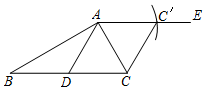 分析 (1)根据AC平分∠DAE,可得∠DAC=∠CAE=x°,将△ADC绕点A逆时针旋转x°,则点C'落在AE上,根据AD=AC,可得点D落在点C处;