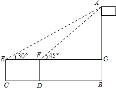 分析 在Rt△FGA中,设AG=FG=x米,根据$\frac{x}{x+3}$=tan30°,求出AG的长,加上BG的长即为旗杆高度.