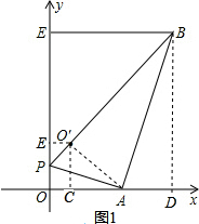 分析 (1)连接O′A,过点O′作O′C⊥x轴,垂足为点C,作O′E⊥y轴,垂足为点E,设点O′的坐标为(x,y),由点P的坐标与点A的坐标可求得三角形POA的面积,再利用轴对称的性质可求得四边形O′POA的面积与O′P的长度,再根据四边形O′POA的面积=梯形O′POC+直角三角形O′CA的面积,即可得到关于x,y的方程,即可用含y的式子表示出x,再在Rt△中利用勾股定理列出关于y的方程,解出即可求得点O′的坐标,再利用待定系数法即可求得直线BP的函数解析式;