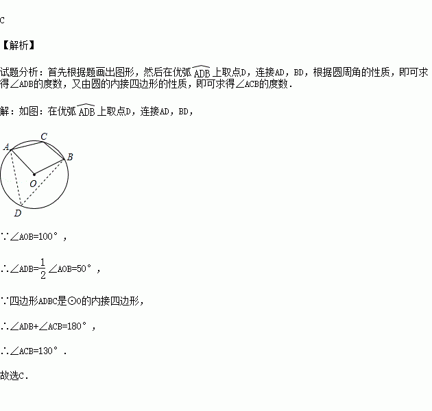 (2014秋•福州校级期中)在⊙O中,若圆心角∠AOB=100°,C是