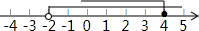 解答 解:$\left\{\begin{array}{l}3(x-1)<5x+1①\\ \frac{1}{2}x-1≤7-\frac{3}{2}x②\end{array}\right.$,由①得:x>-2.由②得:x≤4.所以,原不等式组的解集是-2<x≤4.在数轴上表示为,,所以,这个不等式组的最小整数解是-1.