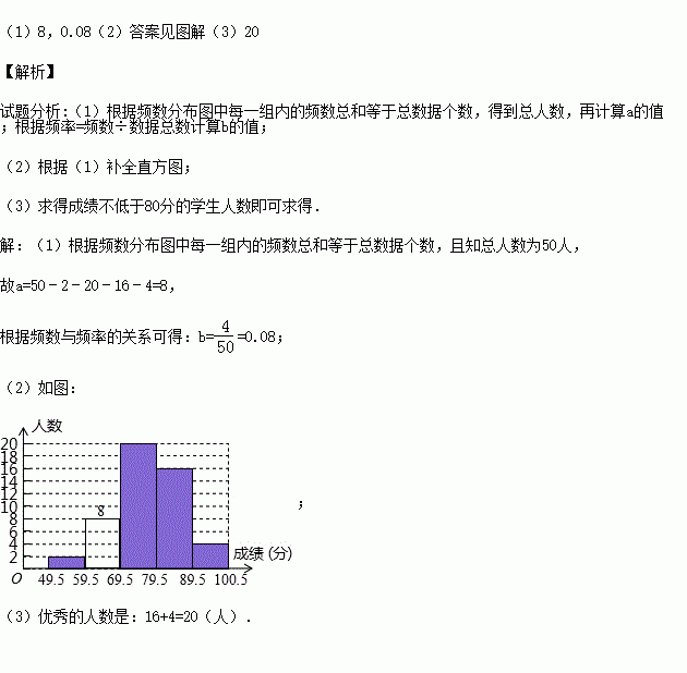频数 2 a 20 16 4 50