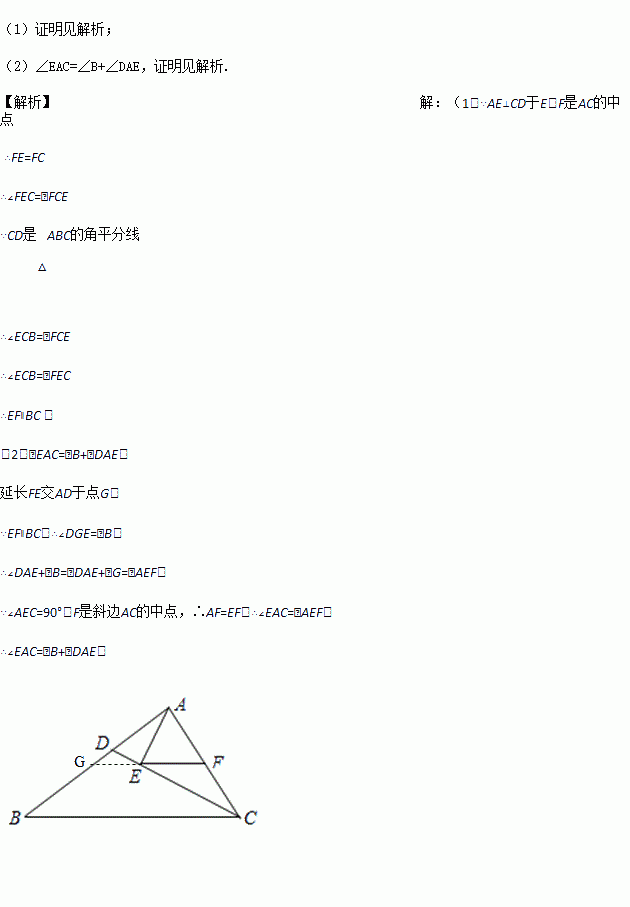 如图,CD是△ABC的角平分线,AE⊥CD于E,F是AC的中点,