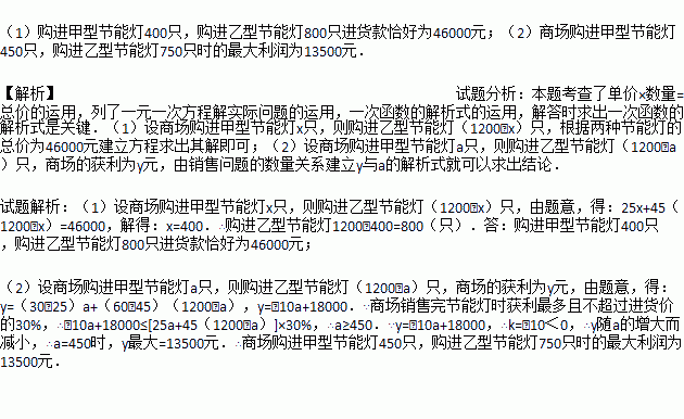 (2)如何进货,商场销售完节能灯时获利最多且不超过进货价的30%,此时利润为多少元?