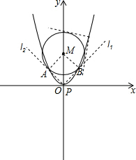 分析 (1)易证点P、M和两个切点组成的四边形是正方形,从而PM=2,设P坐标为(t,t2),则t2+(t2-2)2=22,求出t的值即可,进而得到点P的坐标;