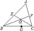分析:根据三角形的内角和定理,得出∠FBC+∠ECB=60°,在△OBC中,即可求出∠BOC=120°,根据对顶角相等即可求出∠FDE的度数,作辅助线在CB上截取CG=CF,可证出△CFO≌△CGO(SAS),即可得出∠FOC=∠GOC,FO=GO,再可证出△BEO≌△BGO,即可得出FO=EO.