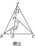 拓展:利用∠1=∠2=∠BAC,利用三角形外角性质得出∠4=∠ABE,进而利用AAS证明△ABE≌△CAF;
