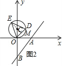 Á¬½ÓOD£¬¹ýµãC×÷CM¡ÍODÓÚµãM£¬ÑÓ³¤MC½»Ô²CÓÚµãE£¬Á¬½ÓEO¡¢ED£¬´ËʱS¡÷DOE×î´ó£¬Èçͼ2Ëùʾ£®![]()