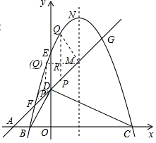 代入y=-x2+3x+4得yN=-$\frac{31}{4}$,而yN-yH=±2,